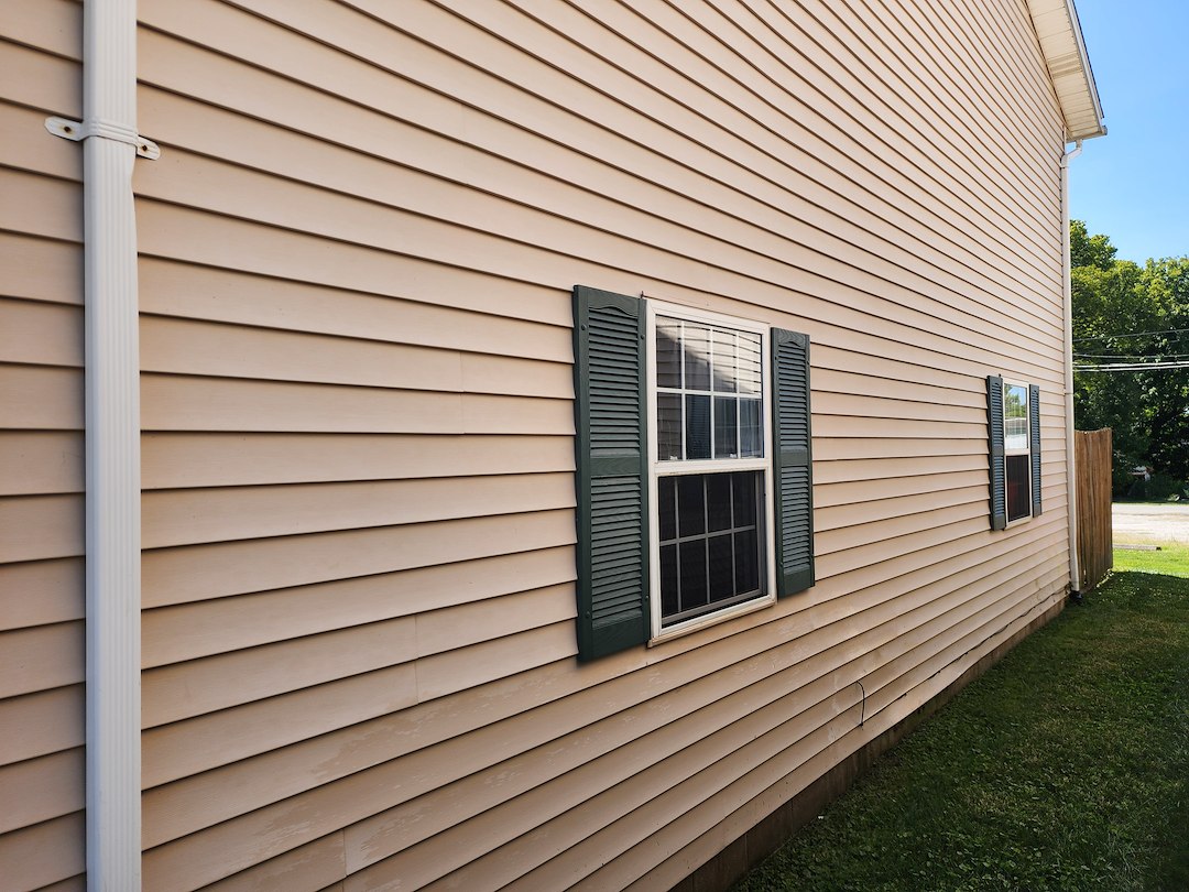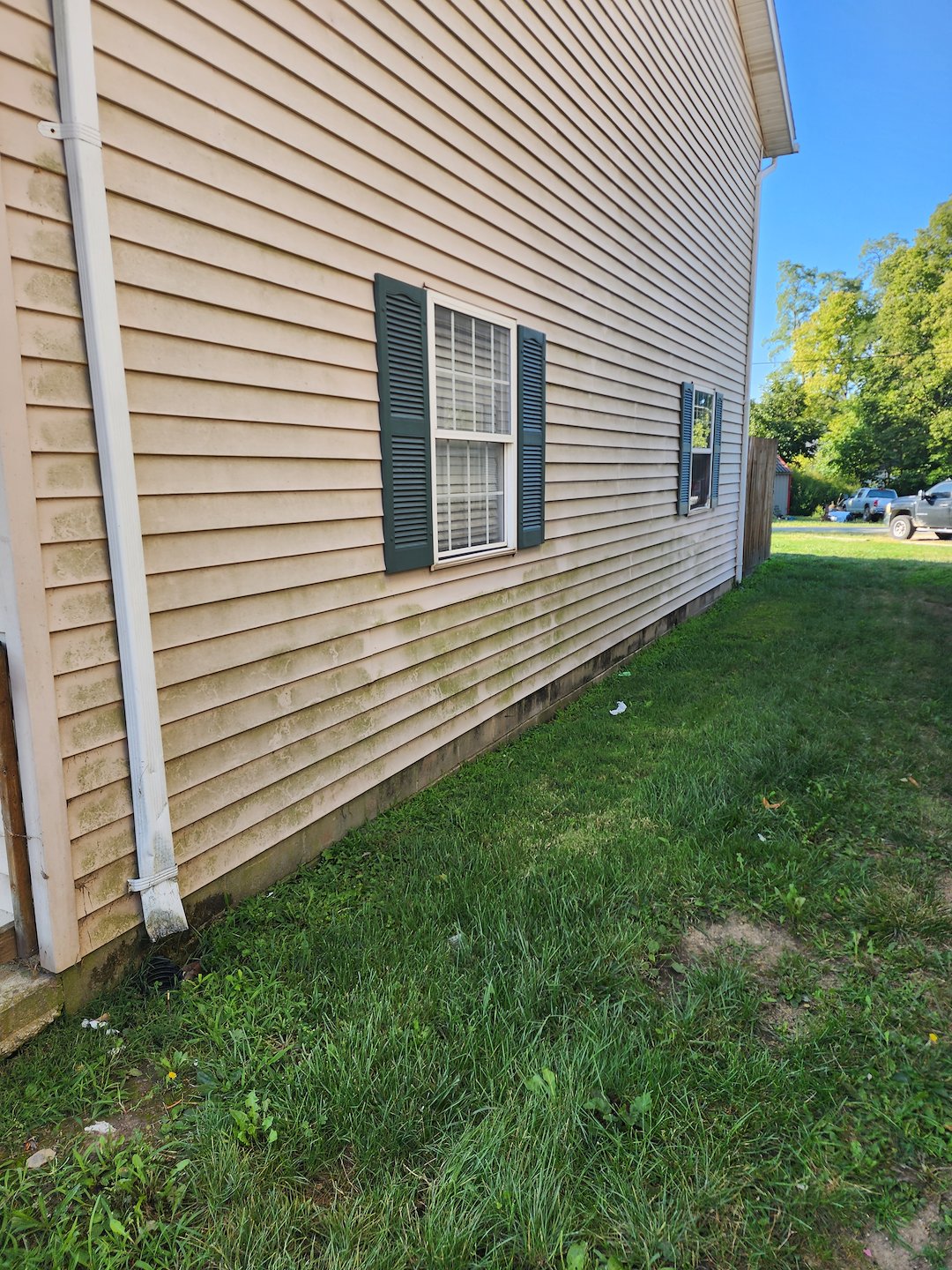 We've been busy this week. Here's a project we worked on in Lynchburg, Ohio in Highland County. Four apartment buildings in need of sprucing up. We performed a full house washing on these units from the gutters down to ground level. Brightening the gutters along the way. They had the typical green growth that you see on so many vinyl buildings. Using our soft washing setup it cleaned right up. The tenants were thrilled with the improvement. Commercial building washing is a great way to improve curb appeal and make your customer/client/tenant experience more enjoyable and more impactful. We offer all types of commercial power washing from building washing strip centers and apartment buildings to cleaning bank buildings and churches. We even offer window cleaning. Give us call for a quote on your next project.