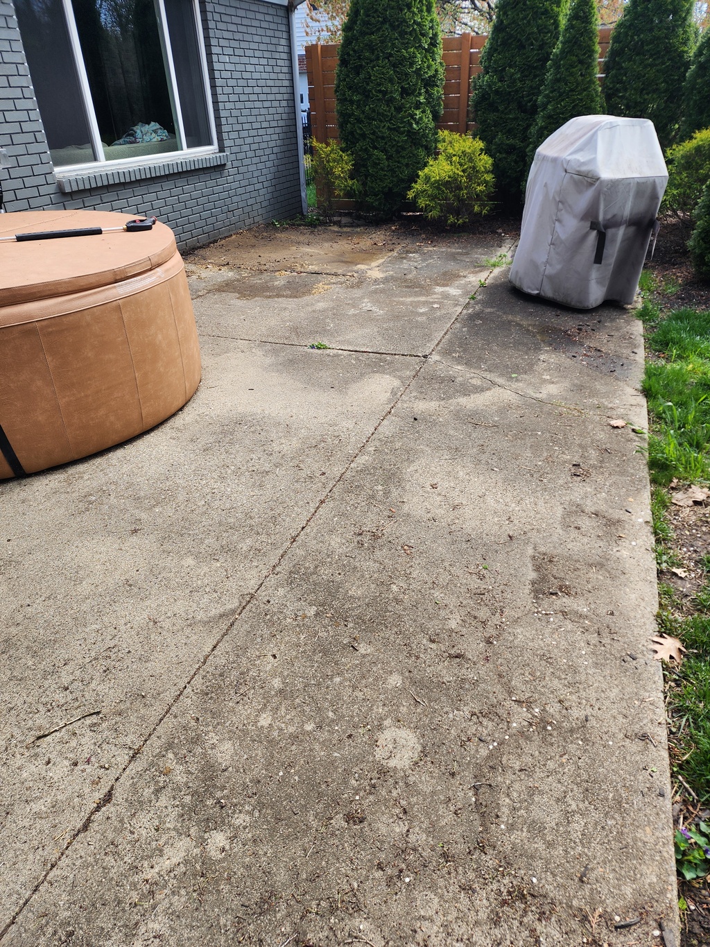 We did some patio cleaning and a general house washing on this home in Madeira over the weekend. What a pleasure it was to work in some sunshine. As you can see from the pictures this concrete patio had years of organic growth accumulated on it. Lots of mold and mildew embedded into the surface. We produced a fantastic end result for our client and they were thrilled. An annual maintenance house wash sure helps to keep your property looking it's best.